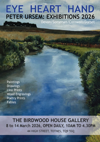 Based in East Cornwall, Peter is known for his relief printmaking, in particular multi-coloured lino prints and recently also wood engravings, but he also works in charcoal and oil paints, writes poetry and fiction.